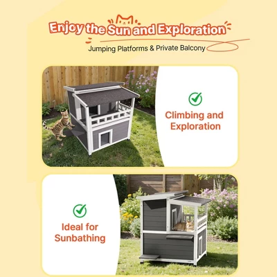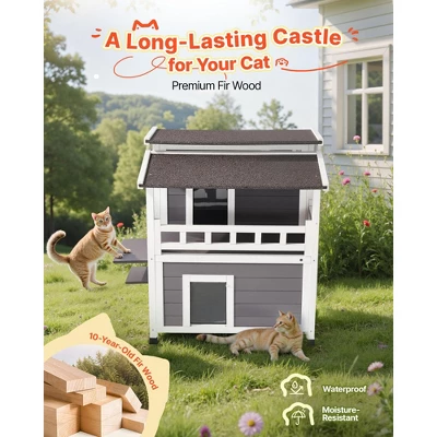 Two-Story Cat House: The first floor provides a private resting area, while the second floor offers a higher vantage point and reduces conflicts between multiple cats. This layered design enhances security and comfort.