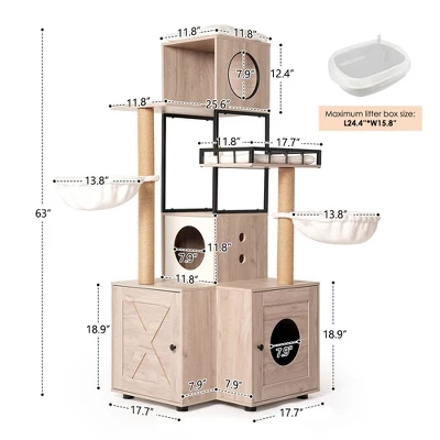 - Space-Saving Integration: Combines cat tree and litter box enclosure in a sleek gray-and-white design that complements modern interiors.
