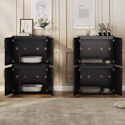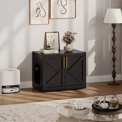 - Stylish and Functional Design: The litter box hidden combines farmhouse charm with practicality, featuring an elegant black finish and unique barn doors with metal handles, effectively hiding your cat’s litter box while enhancing your home decor