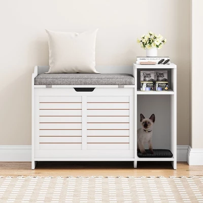 Litter box furniture is designed for people who are not comfortable squatting down to clean their cat’s litter. Greatly relieve pressure on the lumbar spine and legs.This hidden litter box will protect your litter box from dog damage,it can also be used as a place for small pet to sleep and play.