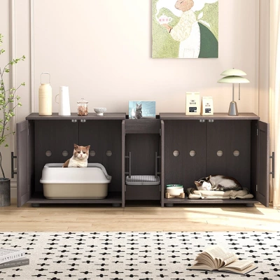 - Integrated furniture: The double-cage cat litter cabinet can be used not only as a cat house but also as a cat toilet, giving cats the greatest privacy space. At the same time, you can also use this furniture as a TV cabinet, coffee table, etc., and place accessories on it to decorate your house.
