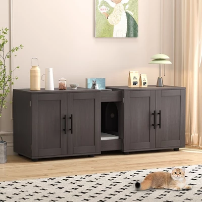 - Double-room cat litter cabinet design: The spacious two-room cat litter cabinet can easily accommodate two cats for use at the same time, Product Size: 55”L x 17.7”W x 22.5”L,it is suitable for placing most cat litter boxes.