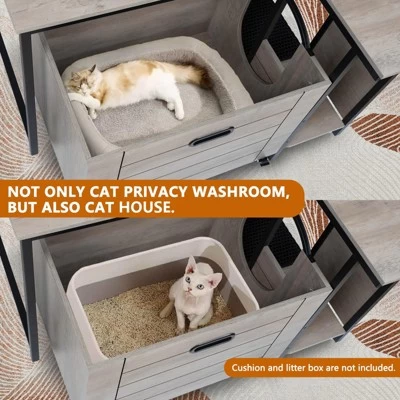- This versatile pet furniture transforms into a comfortable cat house by accommodating a cat bed inside, providing expanded living space while maintaining household cleanliness and feline comfort.
