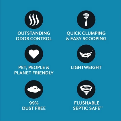 - LIGHTWEIGHT, 99% DUST FREE and FLUSHABLE – SEPTIC SAFE — Naturally free of silica dust, this lightweight cat litter offers low tracking and less mess — and is tested and proven flushable and safe for septic and sewer systems.