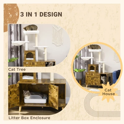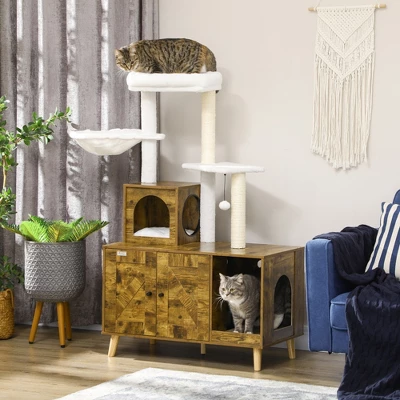 - Dual-Function Design: Combines the functionality of a cat tree and an enclosed litter box in a single unit.
